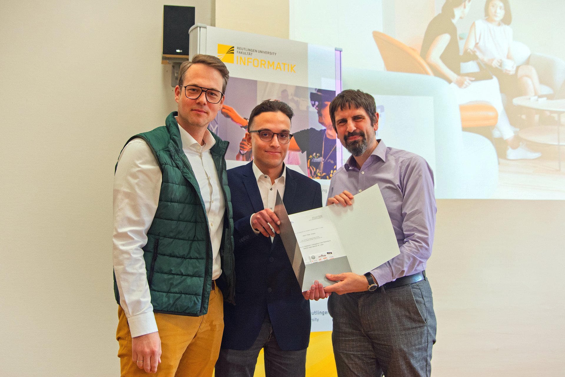„Nun müssen wir uns leider von Ihnen verabschieden“, so Burgert, „doch wir hoffen, dass Sie mit Freude auf Ihre Zeit an der Hochschule Reutlingen zurückblicken und uns als Alumni der Informatik verbunden bleiben.“