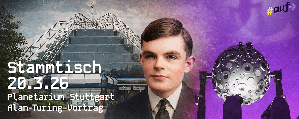 Im Anschluss besuchen wir um 20:00 Uhr gemeinsam einen Vortrag im Planetarium Stuttgart: Dr. Thomas Bührke spricht über das Leben und Werk von Alan Turing.